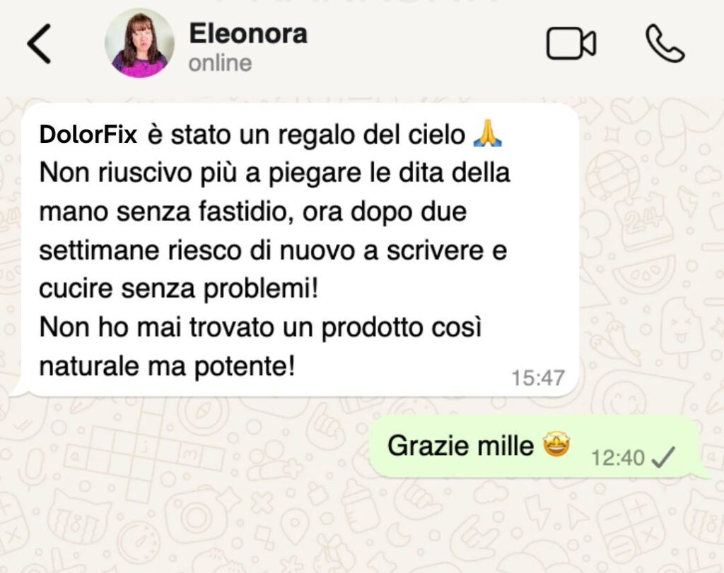 “Gli ingredienti presenti in DOLOR FIX rappresentano una delle combinazioni naturali più efficaci contro i dolori articolari. Lo Zenzero agisce rapidamente sul processo infiammatorio, mentre il Salice Bianco riduce il dolore in modo continuo. È una soluzione valida per chi vuole evitare farmaci ma desidera risultati concreti.”