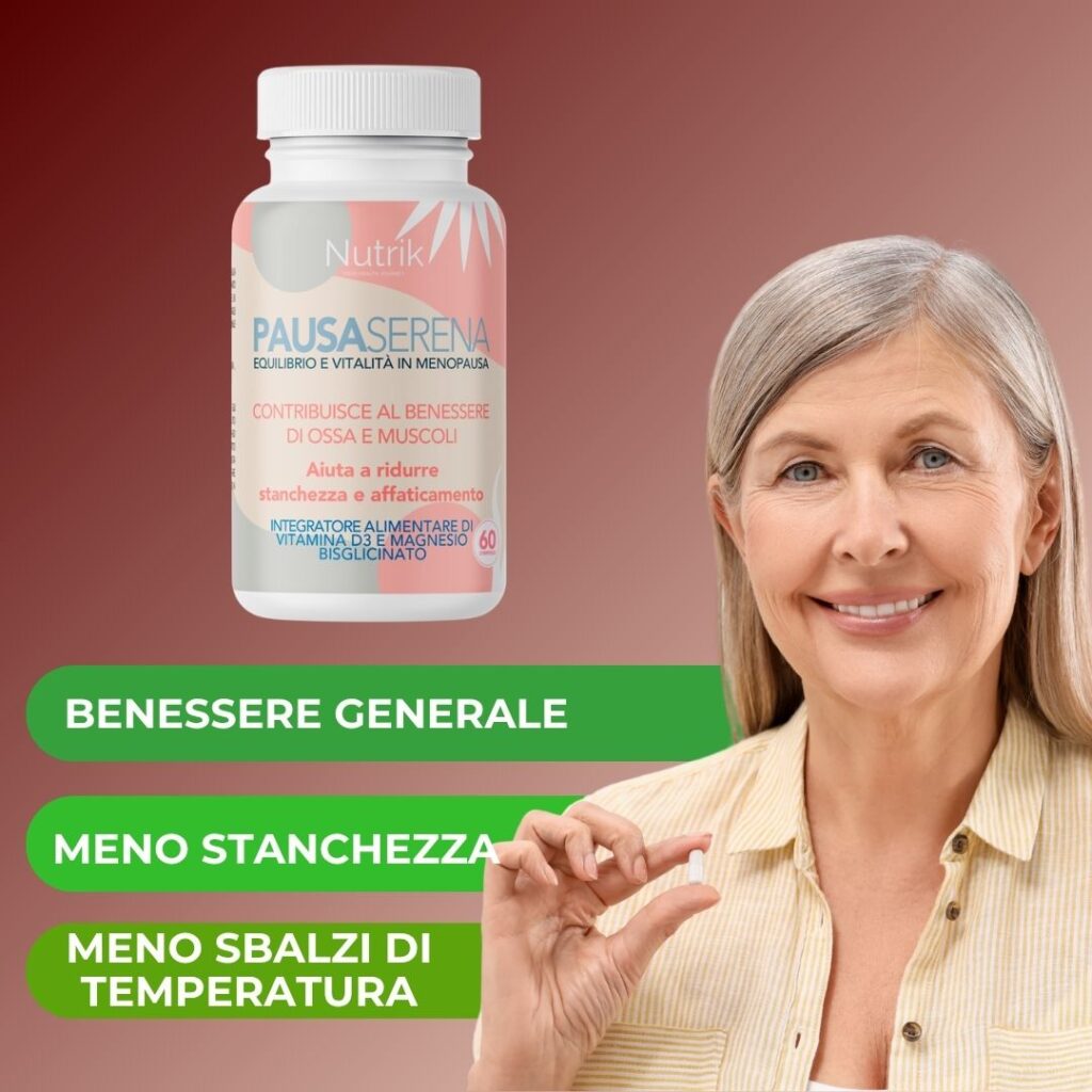 No. L’integratore è realizzato con ingredienti naturali come la vitamina D3 e il magnesio. È sicuro, ben tollerato e può essere usato da tutte le donne in menopausa.