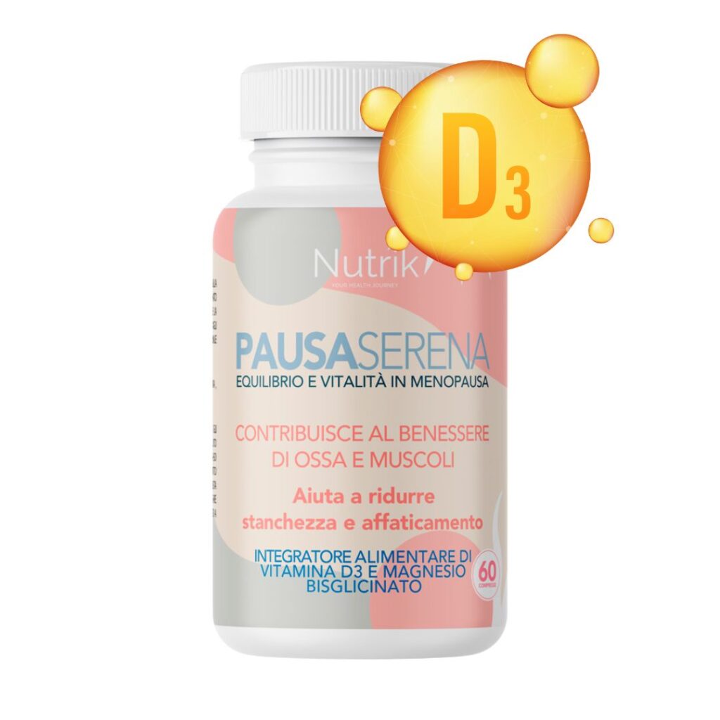 La vitamina D3 favorisce l’assorbimento del calcio, rinforza le ossa e sostiene il sistema immunitario. Durante la menopausa aiuta a mantenere energia, buon umore ed equilibrio ormonale.