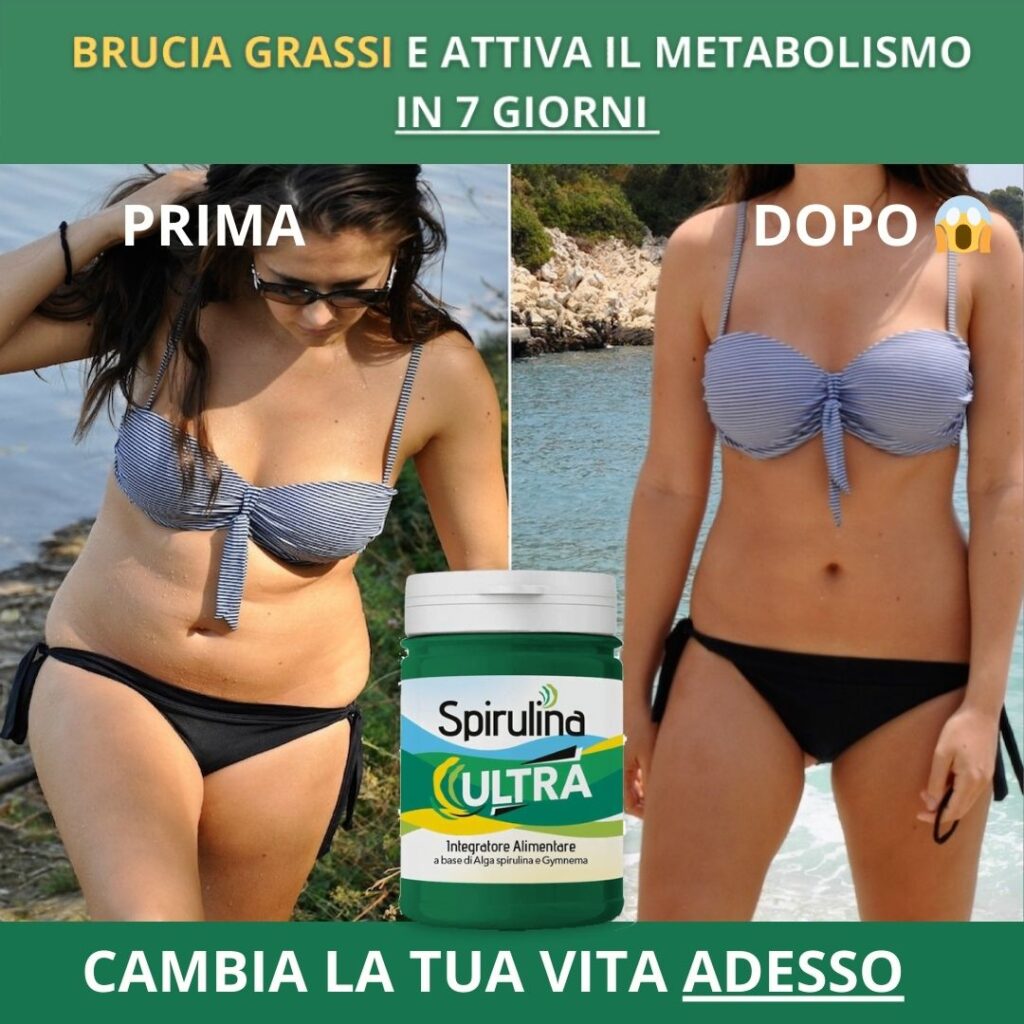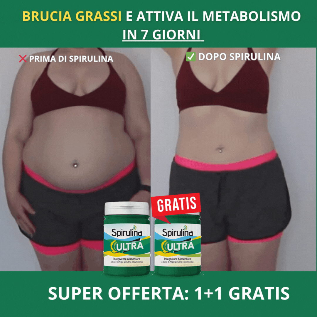 “Spirulina Ultra è un integratore innovativo che combina azione bruciagrassi, depurativa e metabolica. I suoi principi attivi naturali agiscono in sinergia: riducono il senso di fame, favoriscono la digestione e aiutano il corpo a smaltire i grassi in eccesso già dalle prime settimane. Un alleato sicuro e naturale per chi desidera dimagrire senza stress.”