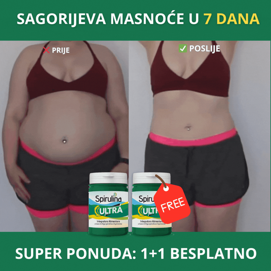 „Spirulina Ultra je inovativni dodatak koji kombinira djelovanje za sagorijevanje masnoća, detoksikaciju i ubrzanje metabolizma. Njegovi prirodni aktivni sastojci djeluju sinergijski: smanjuju osjećaj gladi, potiču probavu i pomažu tijelu da se riješi viška masnoća već u prvim tjednima. Pouzdan i prirodan saveznik za one koji žele smršavjeti bez stresa.”