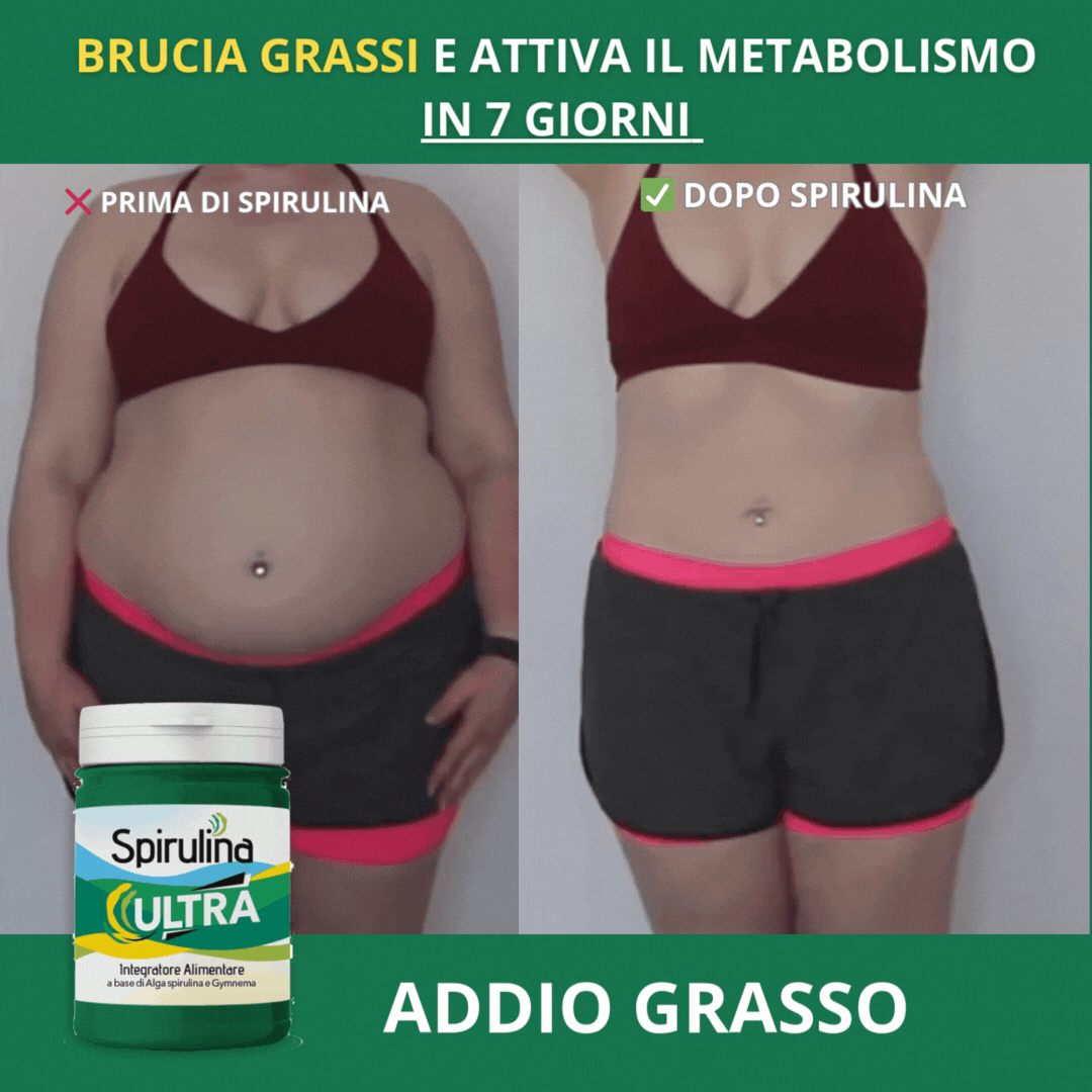 “Spirulina Ultra” è l’integratore naturale perfetto! Brucia i grassi anche a riposo, accelera il metabolismo e riduce la fame in modo naturale.